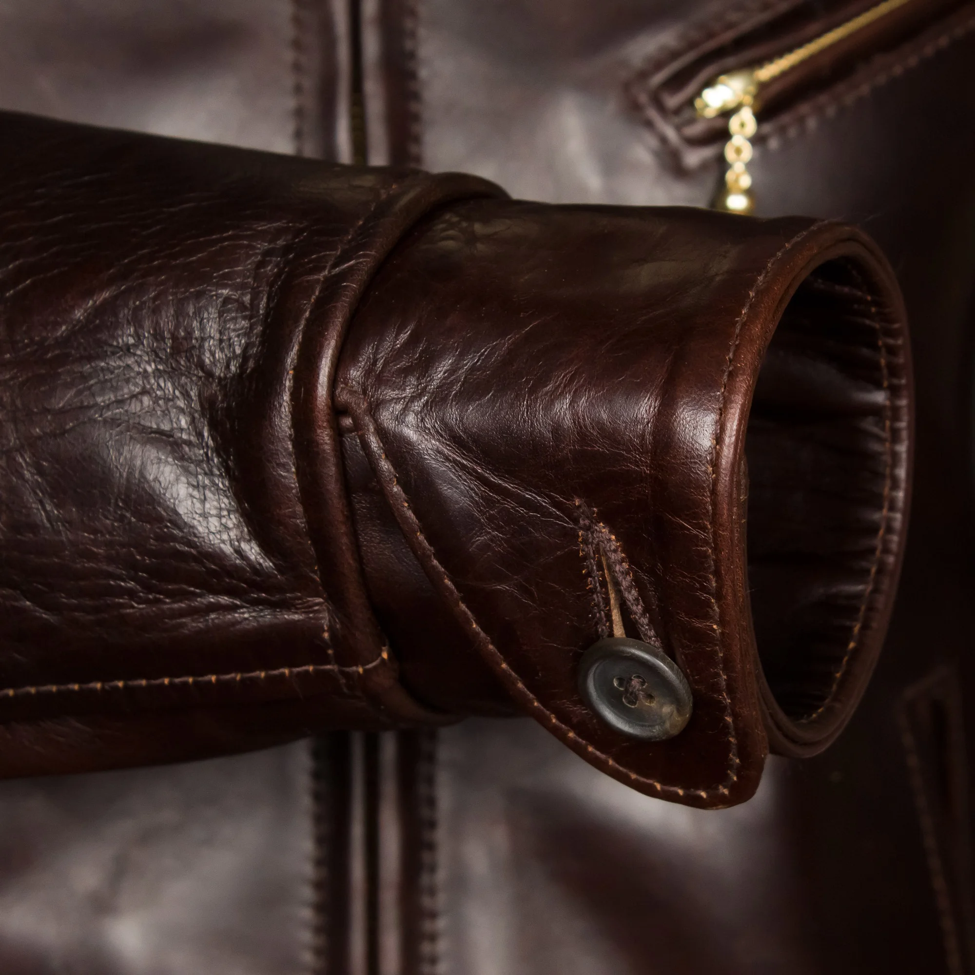 The dark brown shining thick leather gives this jacket a really premium look. It feels strong and protective while still looking fashionable.