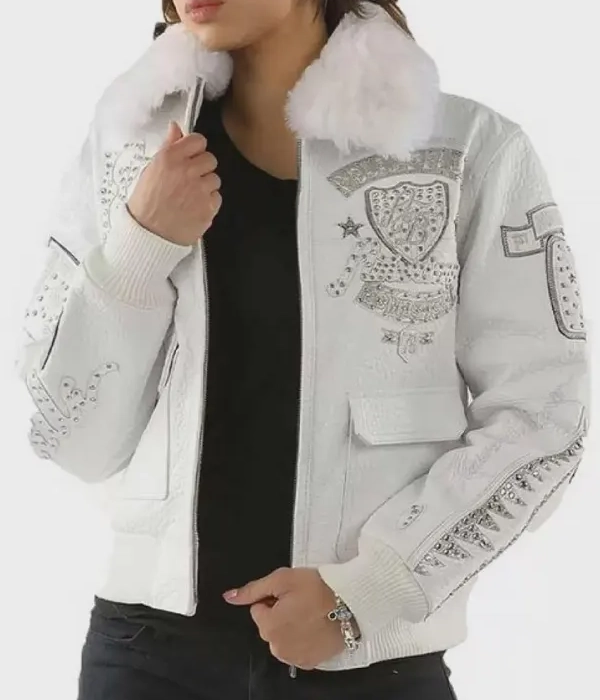 The FJ-L 0019 Ladies Bomber Leather Jacket is the perfect fusion of luxury, elegance, and comfort. Crafted from premium genuine sheep skin leather, this jacket is soft to the touch yet strong enough to last. The highlight lies in its intricately embroidered front panels with crystal pearls, giving it a glamorous, fashion-forward look.