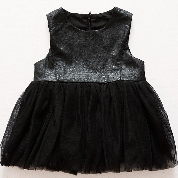 • Skirt: Beautifully crafted with a net fabric overlay combined with faux leather for a chic and playful frock appearance