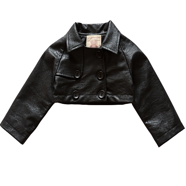Such a charming little jacket! The faux leather shines beautifully, and the net skirt gives it a unique, girly flair. Perfect for winter dresses.