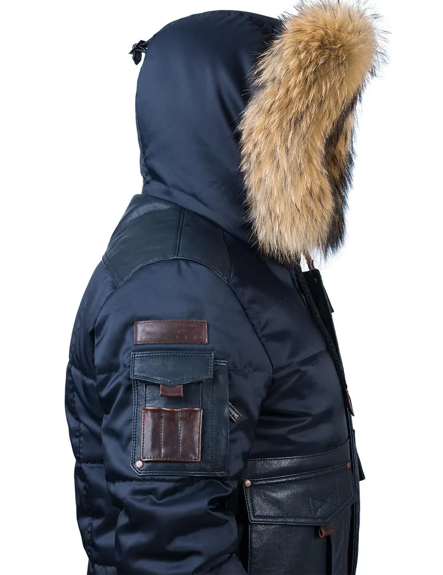 Storage and practicality are built-in with two flap box pockets at the front, a single arm pocket, and carefully integrated rear faux leather panels. The jacket’s stylish fur hooded collar offers versatile wear keeping you cozy and stylish whether you wear it up or down.