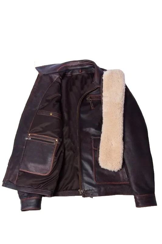The leather quality is absolutely premium. The foldable fur lined collar gives both comfort and style. Perfect for winter evenings.