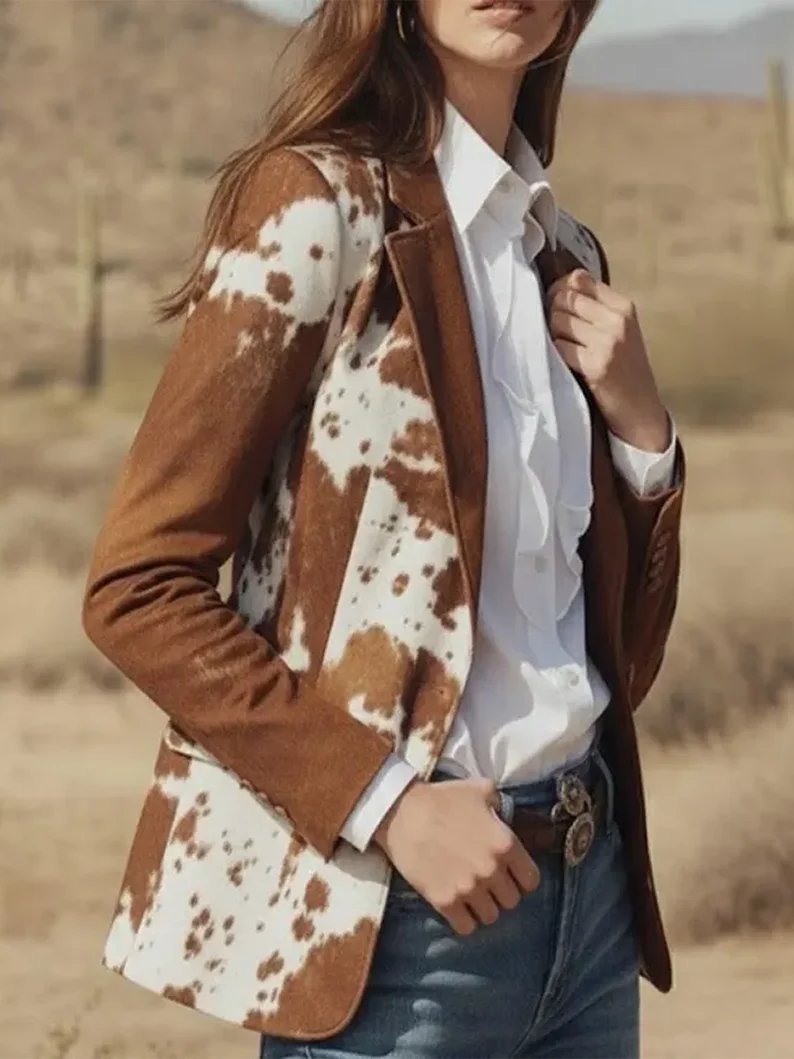 This ladies’ natural cowskin leather coat is designed for those who appreciate luxury, warmth, and timeless style. Crafted from 100% genuine natural cowhide leather, it offers a premium feel with a naturally elegant dual-tone finish. The relaxed fit, crystal-button closure, and beautifully tailored front and back panels make it ideal for office wear, casual outings, and stylish evening gatherings.